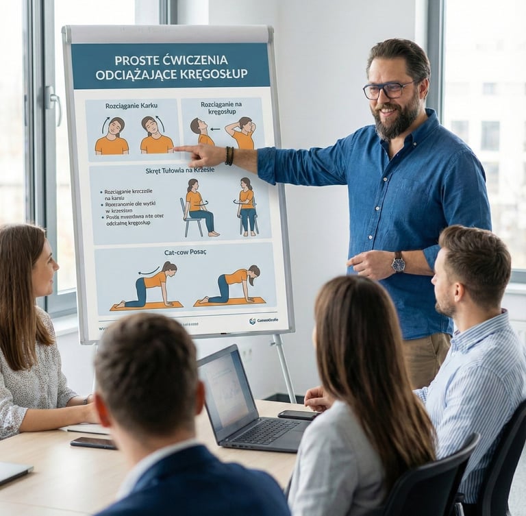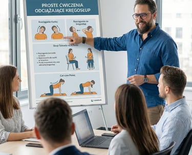 Obszary wsparcia: Ergonomia w praktyce, profilaktyka kręgosłupa, rola snu i regeneracji w pracy zmianowej.